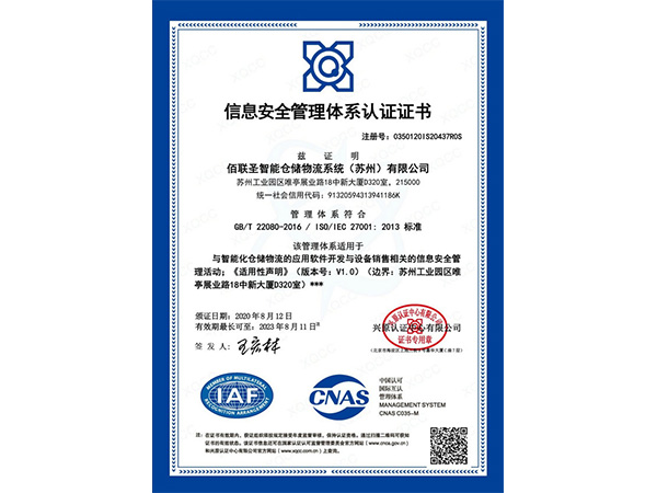 名稱: ISO27001(信息安全管理體系認(rèn)證證書)