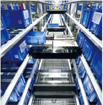 是以箱盒為單元進(jìn)行自動存取的高密度存儲解決方案,運行靈活的穿梭車可以穿梭在任意層高的巷道內(nèi),同時完成對存儲在貨架兩側(cè)的箱盒進(jìn)行存取作業(yè),并由終端的垂直升降機(jī)送達(dá)到地面輸送系統(tǒng),適合品種眾多、中小型零部件和物品的存儲。