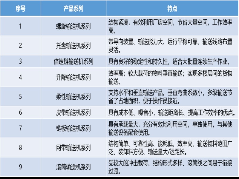 常用輸送設(shè)備包括鏈條式輸送機(jī),輥筒輸送機(jī)、移載機(jī)、提升機(jī)、AGV、地牛工作機(jī)、RGV等,同時(shí)在生產(chǎn)物流領(lǐng)域應(yīng)用十分普遍,如車間輸送線、在線包裝線、汽車裝配線等,具有自動(dòng)化程度高、連續(xù)作業(yè)效率高、維護(hù)成本低、方便快捷等優(yōu)點(diǎn)。