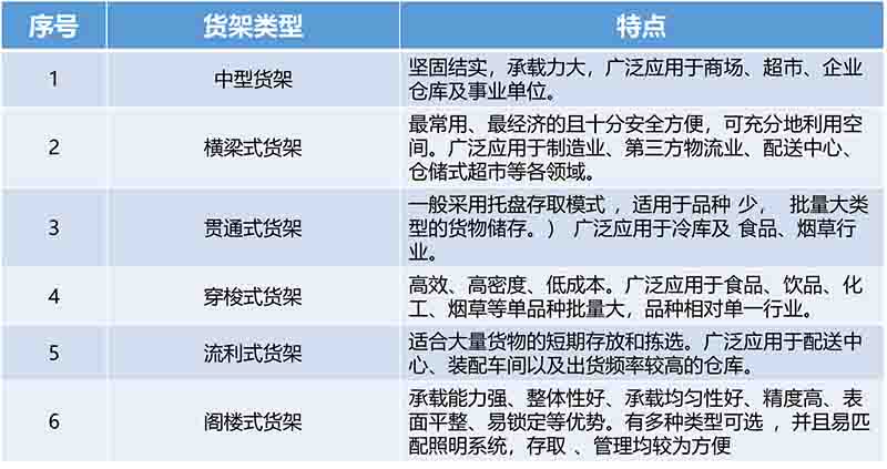 ①貨架形式:貨架的形式有很多,而用在自動化立體倉庫的貨架一般有:橫梁式貨架、牛腿式貨架、流動式貨架等??筛鶕?jù)貨物單元的外形尺寸、重量及其它相關(guān)因素來合理選取。